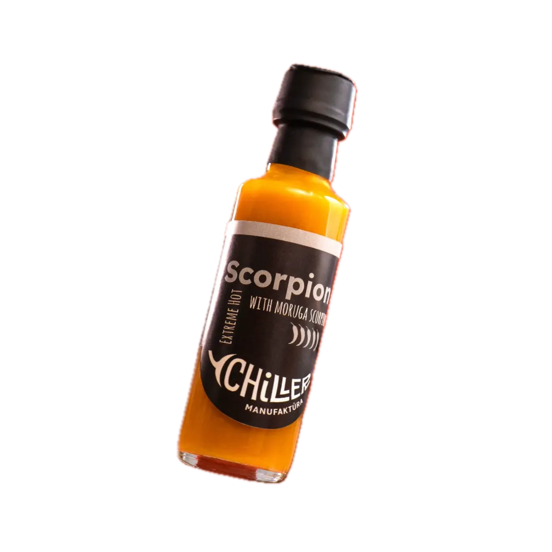 A Scorpion chili szósz natúr Trinidad Moruga Scorpion Yellow paprikából készül – hozzáadott cukor és ecet nélkül. Letisztult összetétel, brutális erő és intenzív chili íz minden cseppben. Kb. 1 400 000 – 1 600 000 SHU erősségével a világ egyik legerősebb paprikájára épül, ezért fogyasztása csak mértékkel ajánlott. Kis mennyiségben is tökéletes levesekhez, szószokhoz, pácokhoz vagy majonézbe keverve – garantáltan extrém csípős élményt ad. 🔥🌶️ Összetevők: Trinidad Moruga Scorpion Yellow chili, pritamin paprika, tartósítószer (nátrium-benzoát). Bővebben